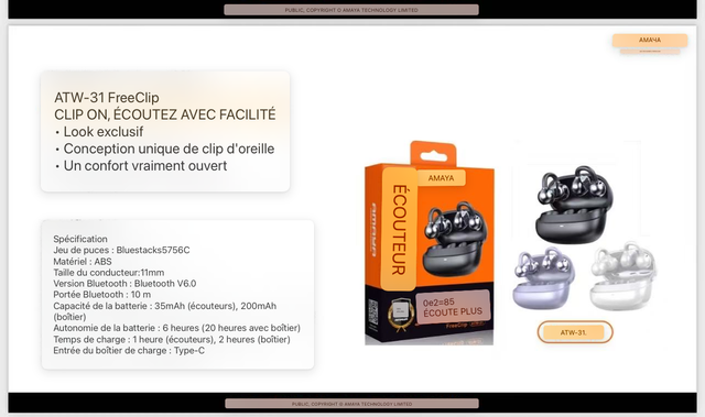 * Capacité de la batterie: 35mAh (écouteurs), 200mAh (boîtier) (Battery capacity: 35mAh (earbuds), 200mAh (case))