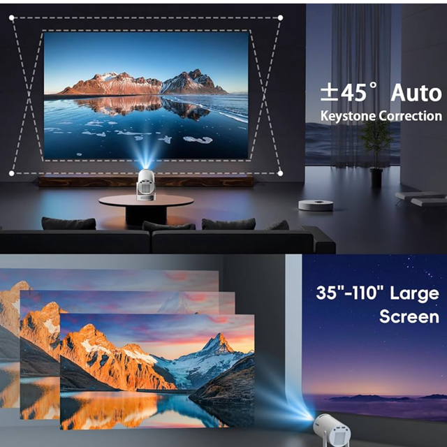 Prise en Charge 4K 1080P et 720P】La nouvelle technologie de projection LCD du videoprojecteur 4k améliore le contraste de l'écran et la précision des couleurs. Le mini projecteur video 4k avec une résolution native 720P, prend en charge la lecture vidéo 4K HDR et offre des couleurs dignes d'un home cinéma avec une luminosité lumens ANSI et un rapport de contraste de 10 000:1. Son rapport de projection courte focale révolutionnaire vous permet de profiter d'un grand écran même dans un espace réduit, rendant chaque image éclatante.